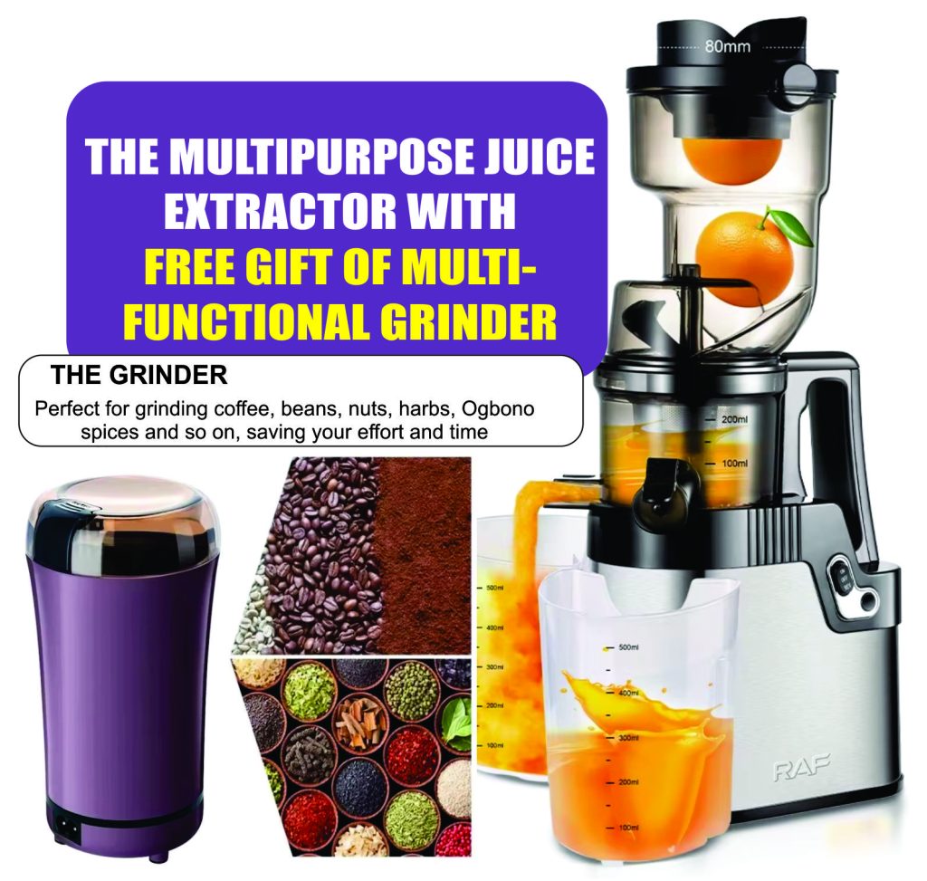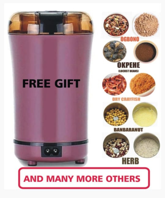 This modern kitchen solution comes with free gift of MULTIURPOSE GRINDER, very strong to grind any dry foodstuff